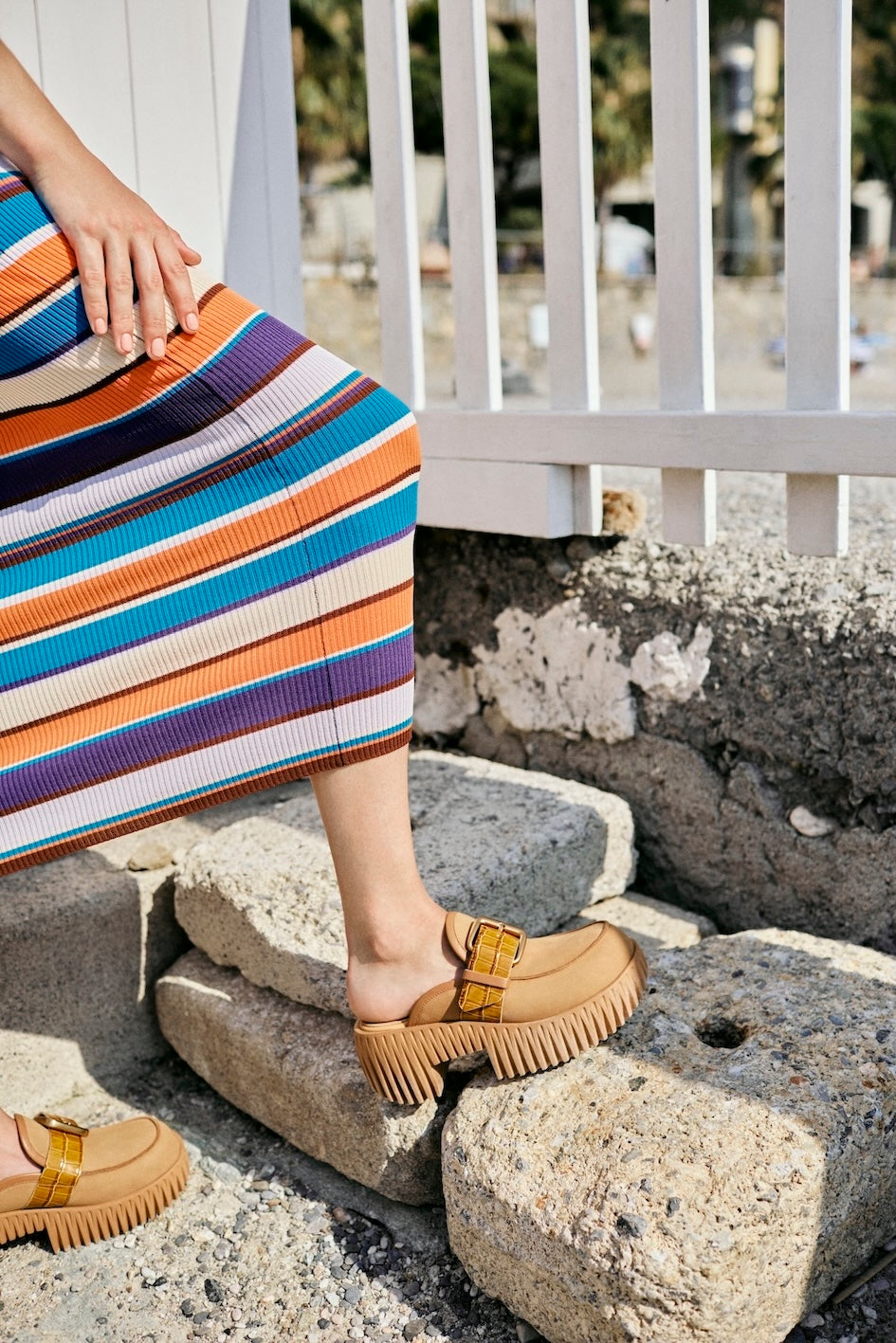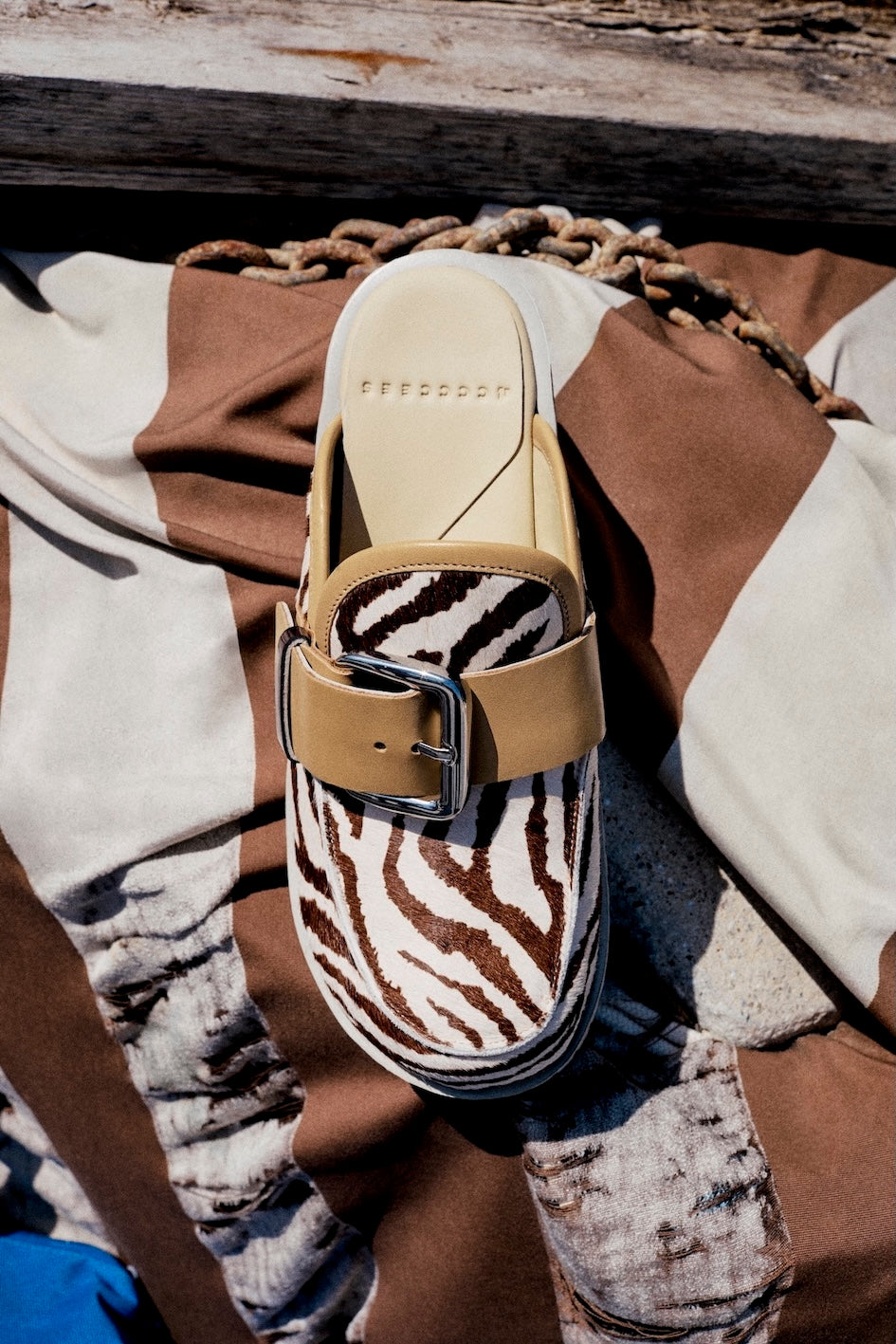 Inspirada en la estética de los zuecos y mocasines tradicionales, HAZEL ofrece una reinterpretación fresca de estas siluetas clásicas. Sus hebillas metálicas le aportan un toque refinado, y está disponible en dos tonos de piel de vacuno, además de una versión llamativa en pelo de pony con estampado de cebra, para quienes buscan un diseño más atrevido.