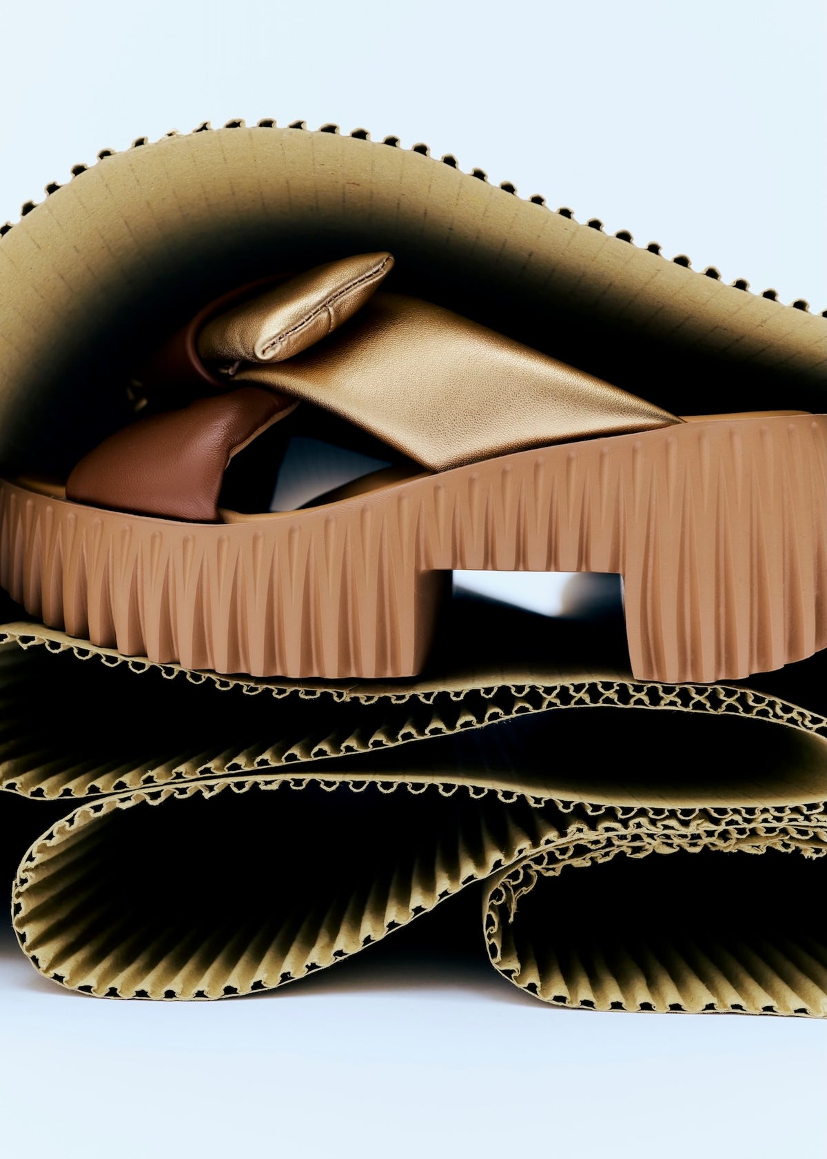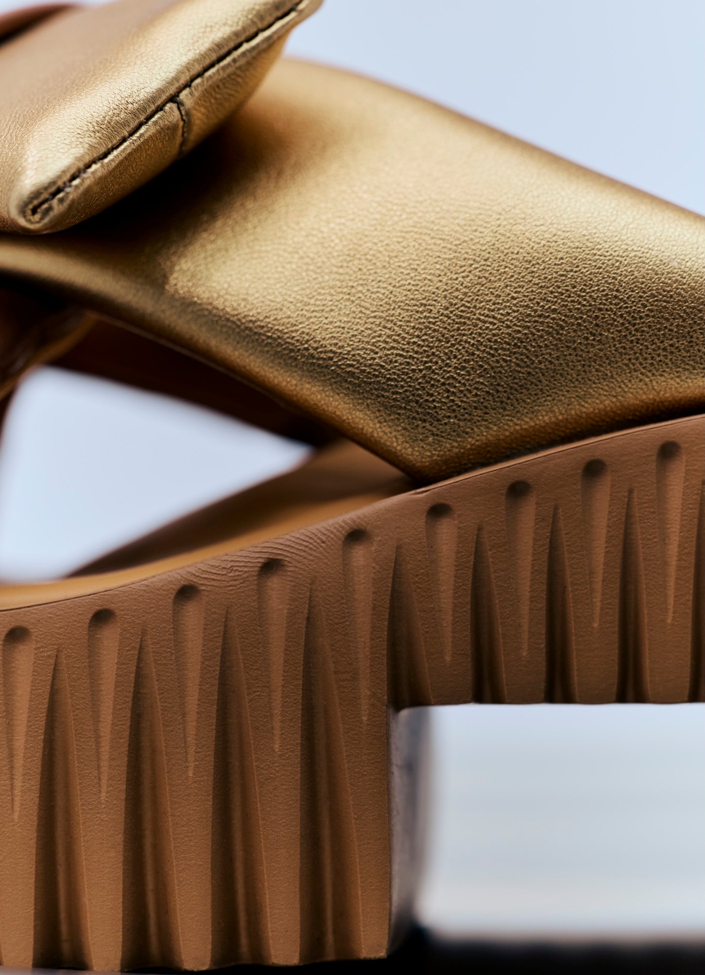 PLIA, una reinterpretación vanguardista de los tradicionales zuecos de madera, ofrece un estilo moderno gracias a su plataforma voluminosa pero ligera con bloques tallados. La textura acanalada de la base recuerda las formas orgánicas de las cabezas de diente de león, las láminas de los hongos y la corteza de los árboles. Confeccionada en espuma de goma, esta sandalia es una interpretación moderna y exquisita de una silueta clásica.