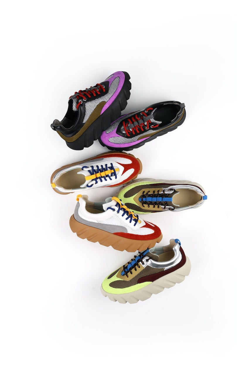 Combinando una estructura ligera con una expresión dinámica, la deportiva FLOW está confeccionada con paneles de malla recubierta y una mezcla de pieles que la hacen única. Forrada con lycra para mayor comodidad, cuenta con un collar acolchado que asegura el pie en su lugar. Disponible en cuatro colores.